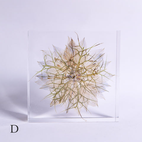 Each piece is one-of-a-kind, as real plants are carefully preserved inside.