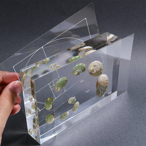 Clear sheets are placed at both the front and back of the specimen, allowing for multiple ways to enjoy and display it.