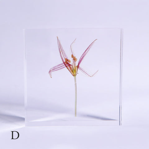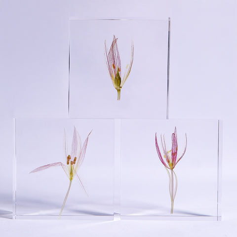 Each piece is one-of-a-kind, as real plants are carefully preserved inside.