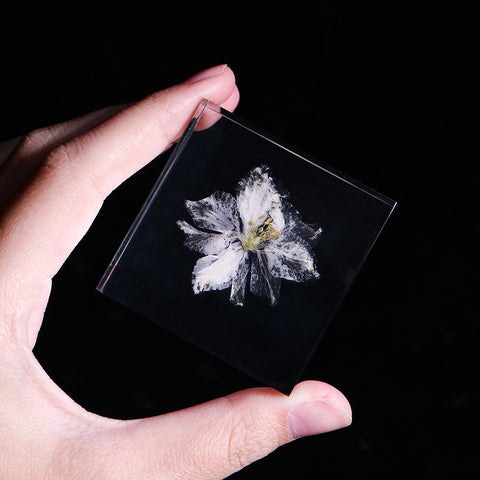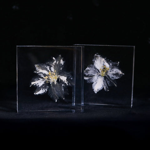 Each piece is one-of-a-kind, as real plants are carefully preserved inside.